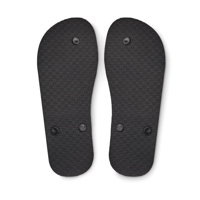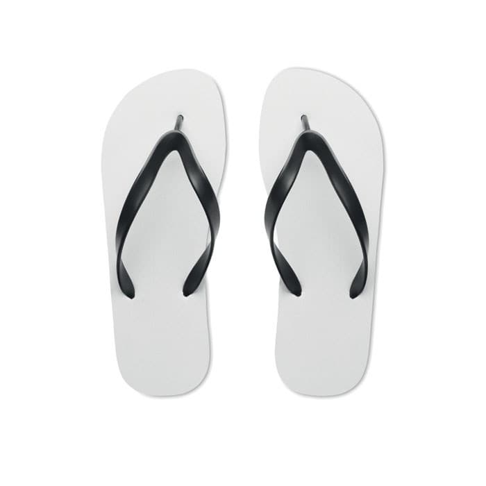 Badslippers geschikt voor sublimatieprint met PVC bandjes. Zool is van rubber met stoffen polyester toplaag. Maat 42 - 44. Item kan alléén bedrukt besteld worden.