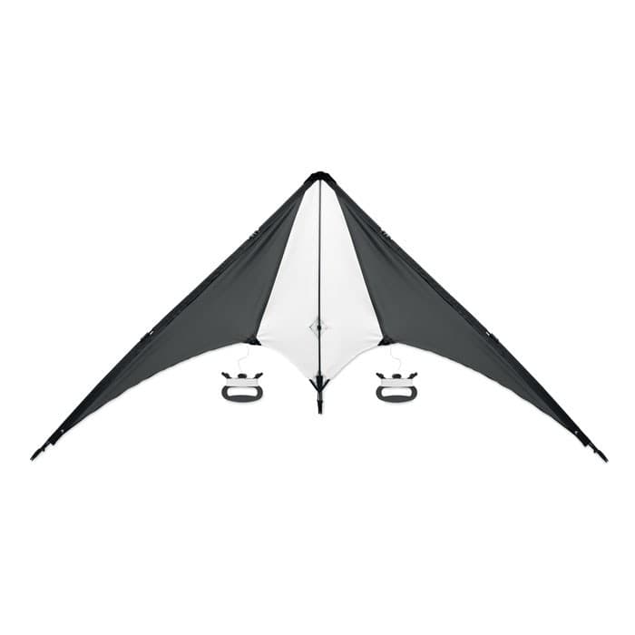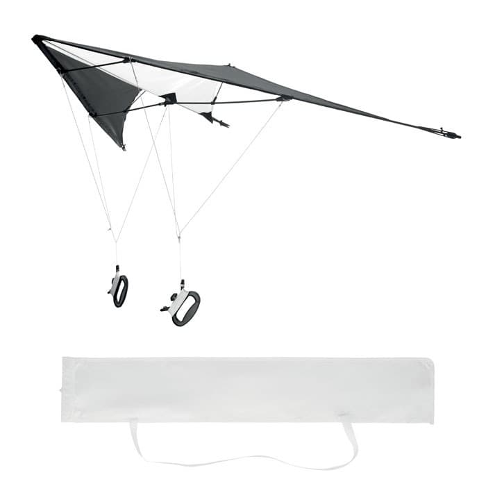 Delta vlieger van 210R ribstop polyester en 2 handvatten verpakt in handige opbergzak.