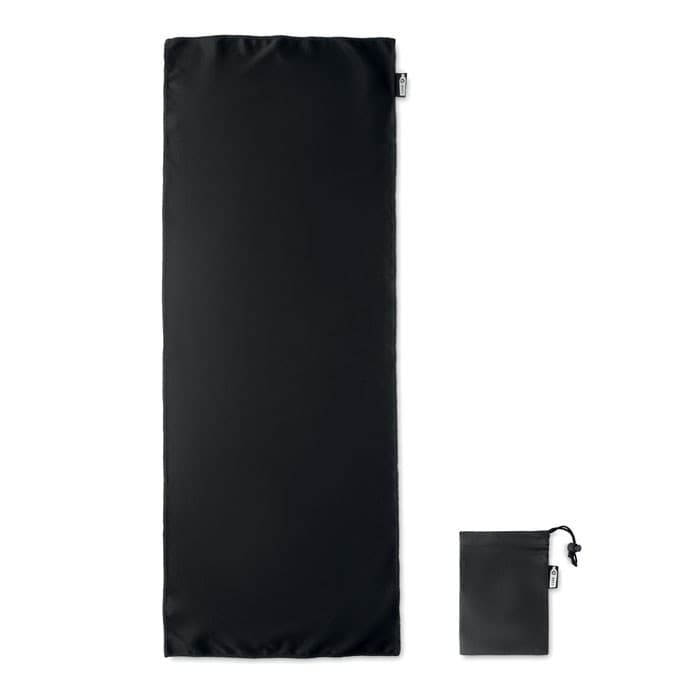 RPET sporthanddoek met hoog vochtabsorberend vermogen in een RPET non woven mesh tas.