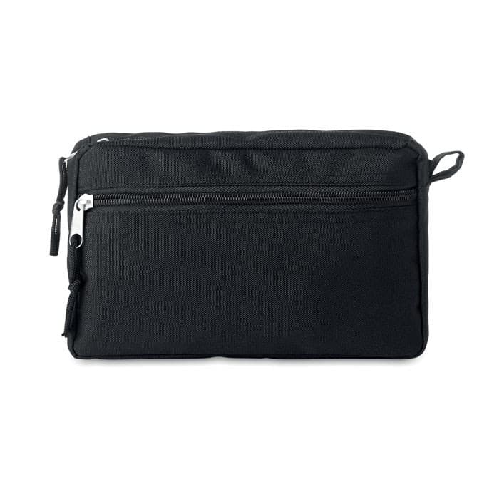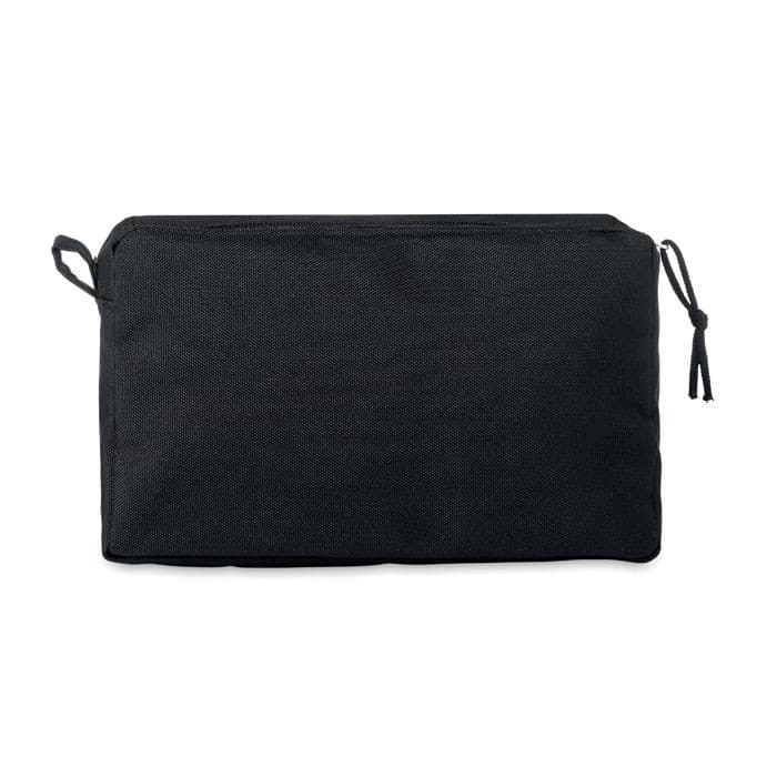 600D RPET toilettas met dubbele rits en gevoerd met PU.