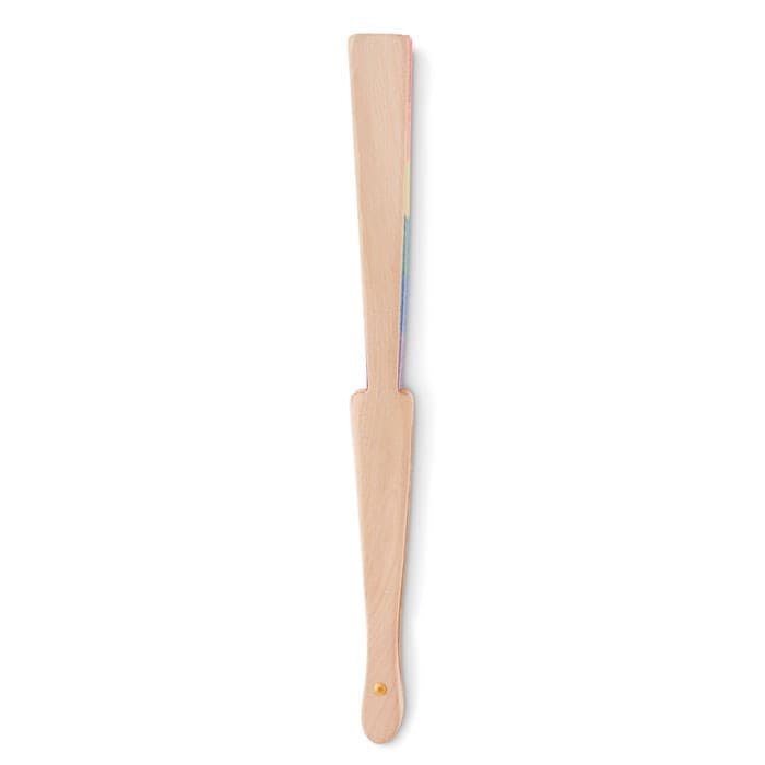 Wil je waaiers bedrukken voor een kleurrijke actie of zomers event? Deze opvouwbare goedkope waaier is gemaakt van hout met een polyesterdoek in regenboogpatroon en is een opvallend relatiegeschenk dat weinig ruimte inneemt.