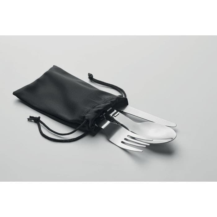 3-Delige RVS kampeerbestekset in RPET zakje.