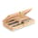 Gereedschapsset in een bamboe koffer met 3 schroevendraaiers, 10 bits in houder, 3 sleufmaten, 3 Torx formaten en 1 adapter, 4 doppen, 1 st. frees, 1 handvat en 1 verbindingsstuk. Bamboe is een natuurlijk product, de kleur per artikel kan verschillen.