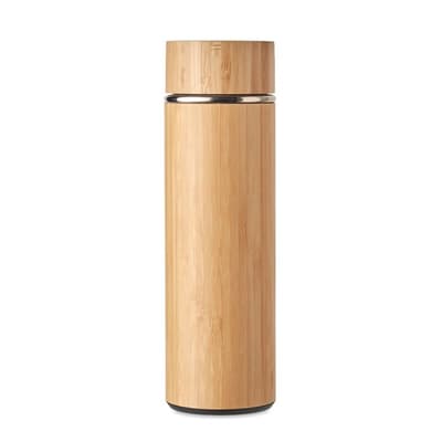 Dubbelwandige thermosfles van RVS en bamboe. Wordt geleverd met een uitneembare theefilter. Inhoud 400 ml. Lekvrij. Bamboe is een natuurlijk product, de kleur per artikel kan verschillen.
