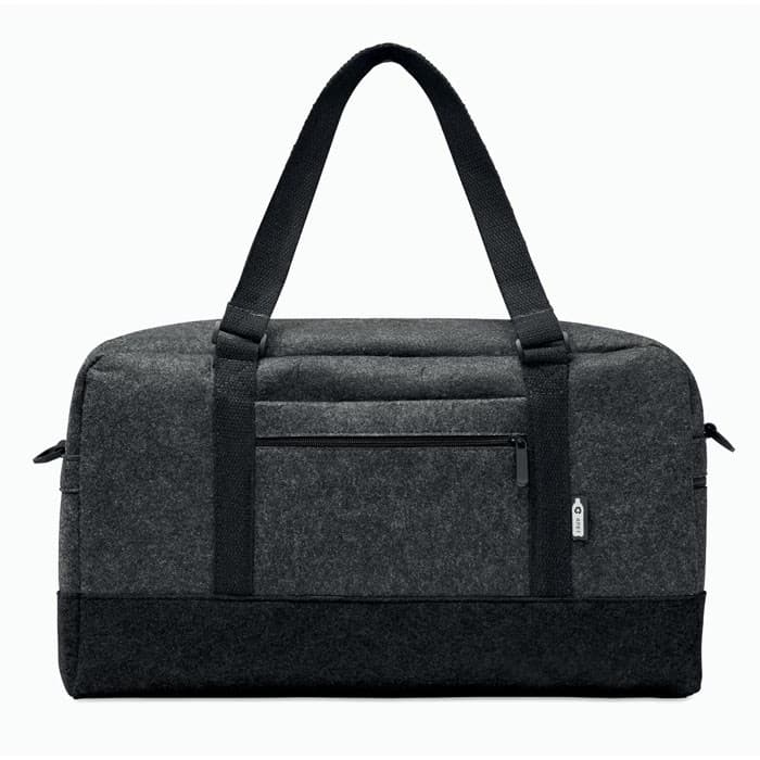 Sport-/ weekendtas van RPET vilt met voorvak met rits, canvas handvatten en afneembare verstelbare schouderriem.