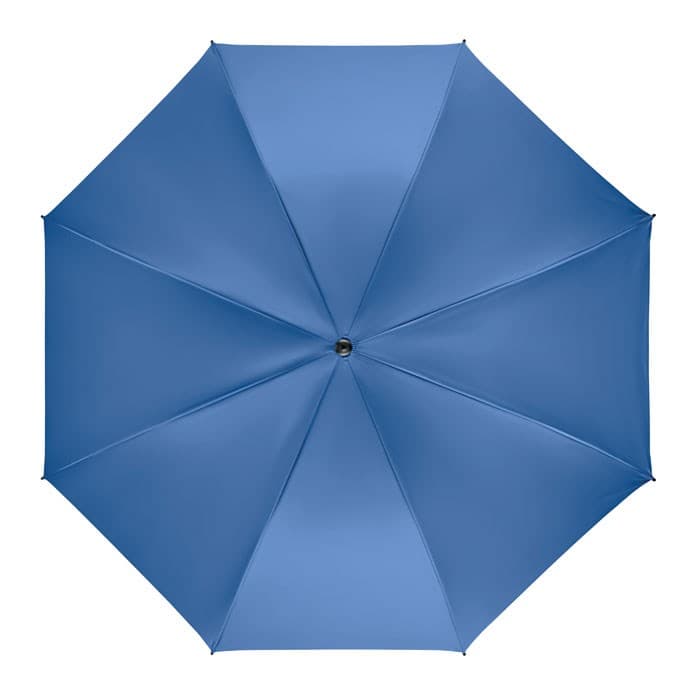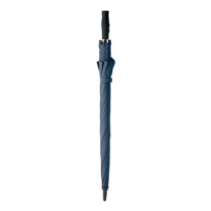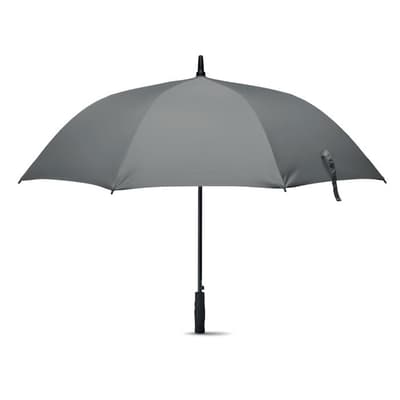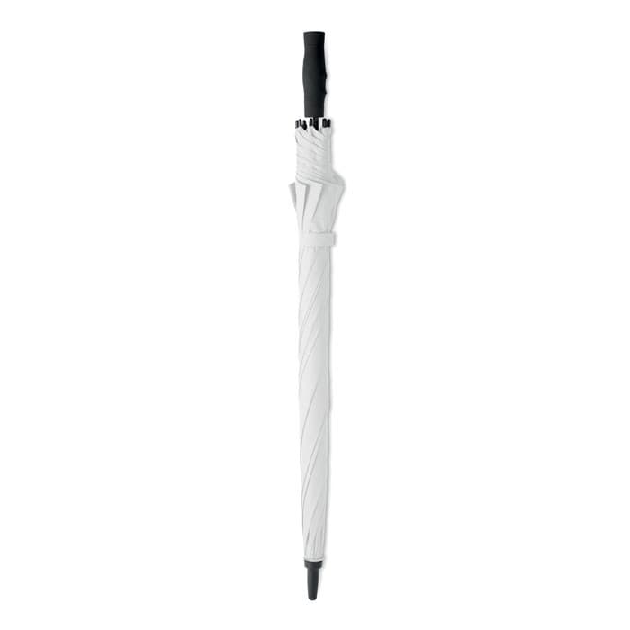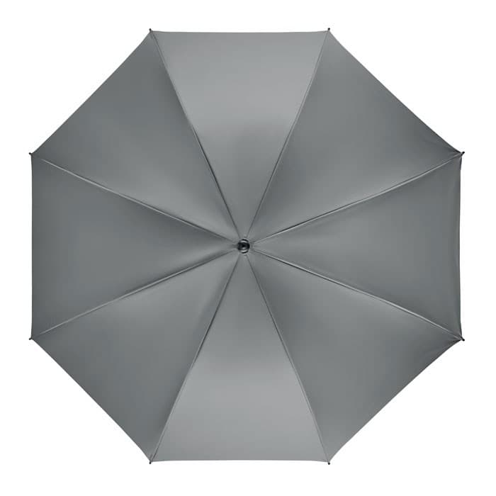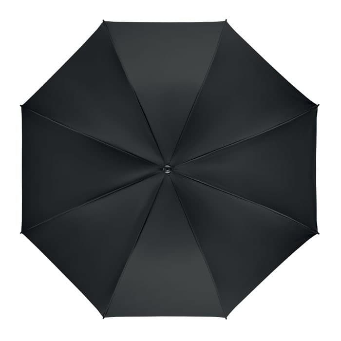27 Inch windbestendige paraplu met 190T pongee doek, fiberglas stok en baleinen. Met zwart kunststof tips en top, recht handvat van rubberized ABS. Opent automatisch en sluit handmatig.