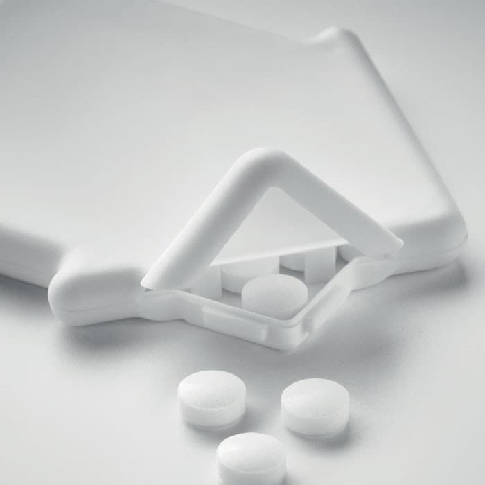 Pepermuntjesdispenser in vorm van een huis, 8 gram pepermuntjes.