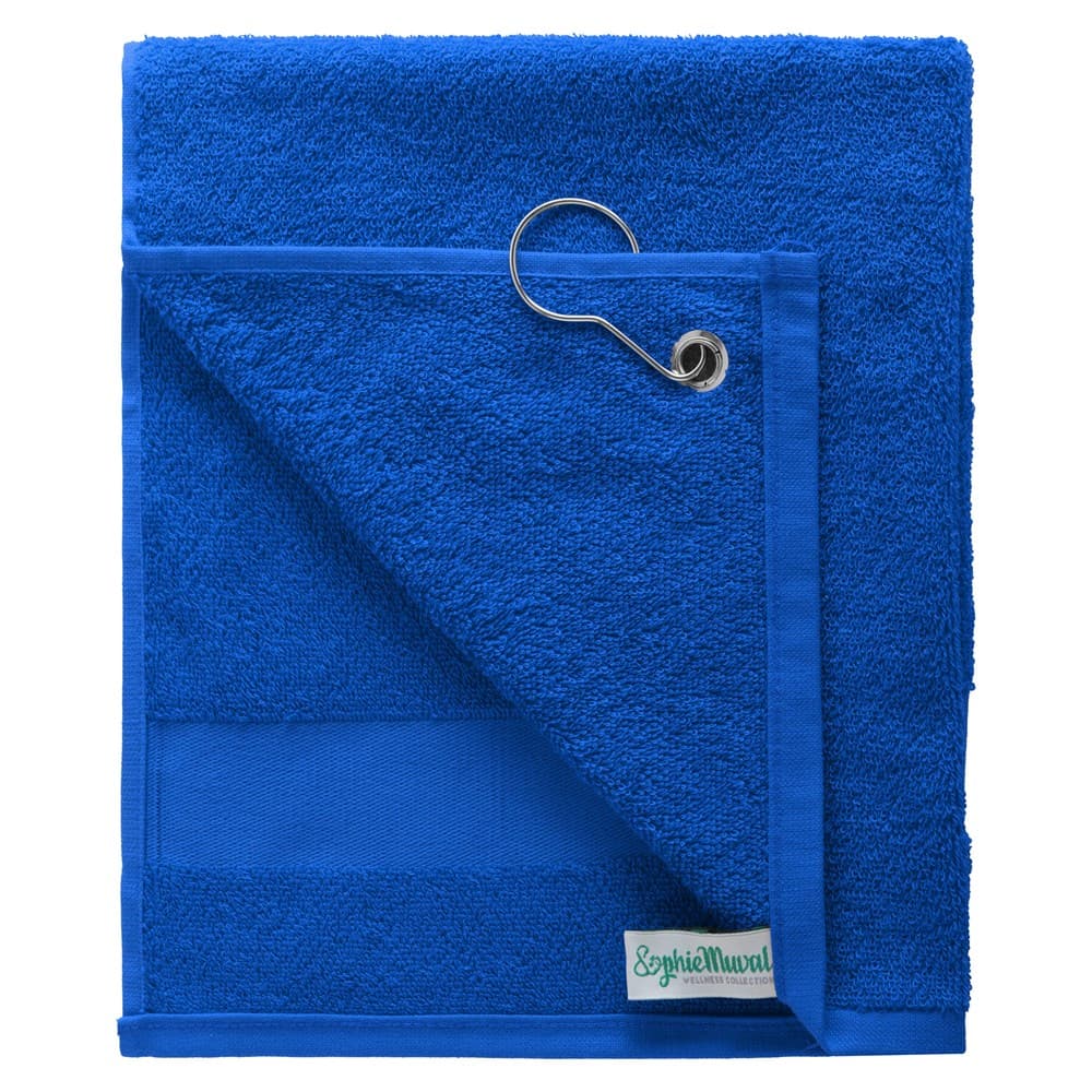 Deze handige Sophie Muval golfhanddoek met clip is te voorzien van een borduring of zeefdruk. De handdoek heeft een band 55x30cm en een grammage van 450 gr/m2.