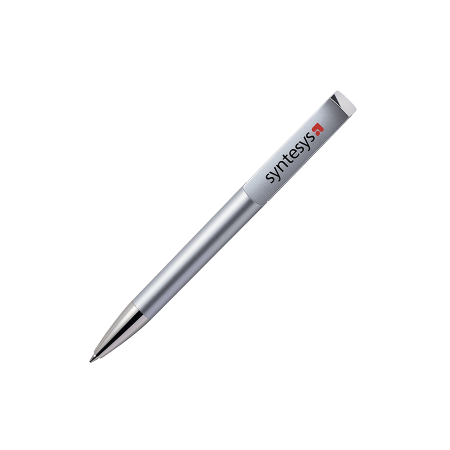 Maxema balpen TAG TA1 AL CR, draaibalpen met aluminiumkleurige houder, verchroomd puntstuk, en element boven de clip. Voorzien van Jumbo vulling met blauwe Dokumental inkt voor tot 2.500 meter schrijfplezier