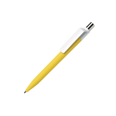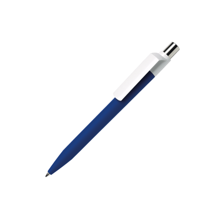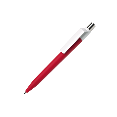 Maxema balpen DOT D1 GOM CB CR met gekleurde houder voorzien van rubbercoating, glanzend witte clip, glanzend gekleurd element in de verchroomde drukker. Voorzien van Jumbo vulling met blauwe Dokumental inkt voor tot 2.500 meter schrijfplezier. Houders, clips en element in drukker leverbaar in maar liefst 21 kleuren die vanaf 2.000 stuks per onderdeel onderling te combineren zijn