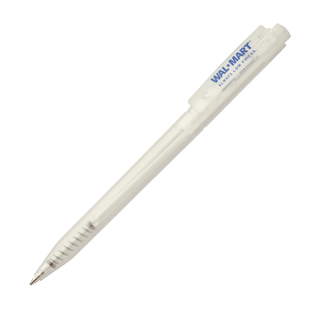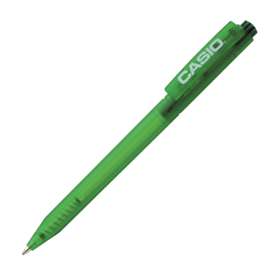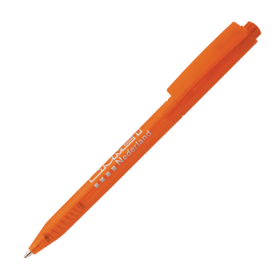 HALLIGEN balpen transparant Peekay. Transparante kunststof balpen met houder en clip uit 1 stuk, uniek clip-druk mechaniek en blauwschrijvende X-20 vulling