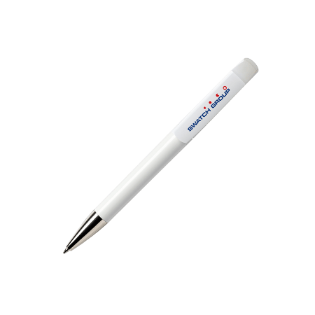 Maxema balpen FLOW F1 C CR, draaibalpen met glanzend gekleurde houder, bovenstuk en clip, verchroomd puntstuk. Voorzien van Jumbo vulling met blauwe Dokumental inkt voor tot 2.500 meter schrijfplezier. Houder, bovenstuk en clip zijn leverbaar in maar liefst 22 kleuren welke vanaf 2.000 stuks onderling qua kleur gecombineerd kunnen worden.