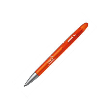 Maxema balpen ICON IC400 FROST AL, draaibalpen met frosted gekleurde houder en clip, aluminiumkleurig puntstuk. Voorzien van Jumbo vulling met blauwe Dokumental inkt voor tot 2.500 meter schrijfplezier. Boven- en onderstuk van de pen zijn leverbaar in 10 kleuren en zijn vanaf 2.000 stuks onderling qua kleur te combineren.