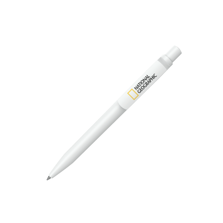 Maxema balpen DOT D1 MATT B met mat witte houder, clip en drukker, glanzend gekleurd element in de mat witte drukker. Voorzien van Jumbo vulling met blauwe Dokumental inkt voor tot 2.500 meter schrijfplezier. Houders en element in drukker leverbaar in maar liefst 20 kleuren welke per onderdeel vanaf 2.000 stuks onderling te combineren zijn.