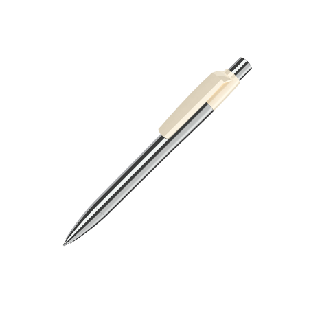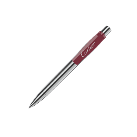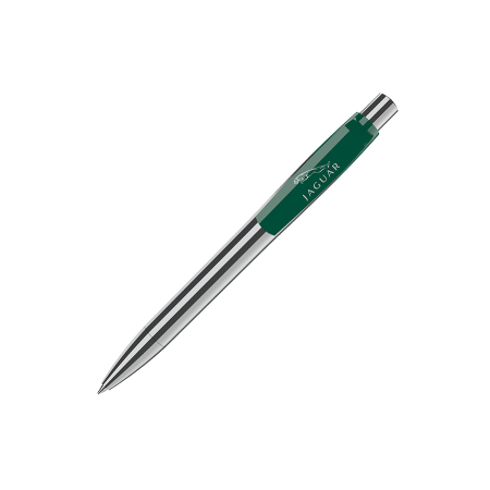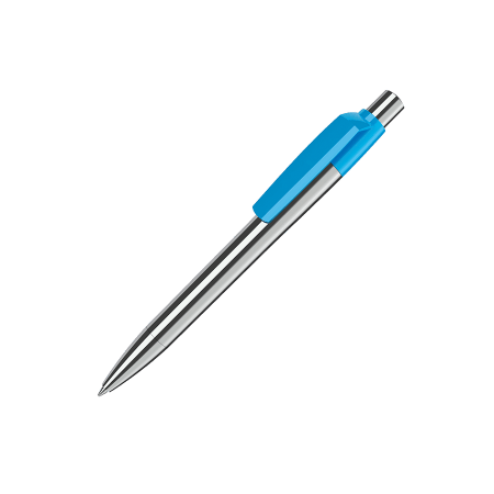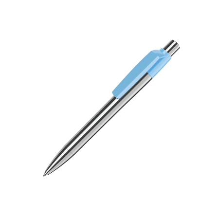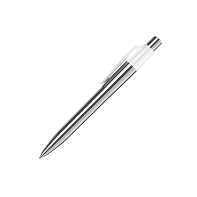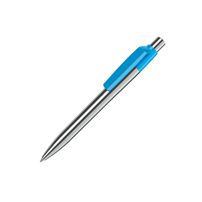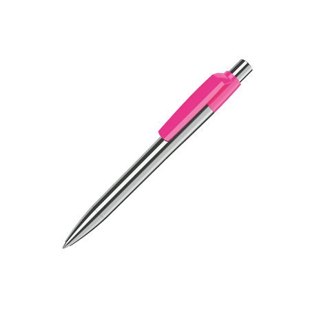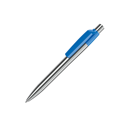 Maxema balpen MOOD METAL MD1 M M1 met metalen chroomkleurige houder, puntstuk en drukker, met glanzende gekleurde clip. Voorzien van Parker vulling met blauwe Dokumental inkt voor tot 4.000 meter schrijfplezier. Clips leverbaar in maar liefsts 23 kleuren.