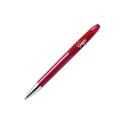 Maxema balpen ICON IC400 30 CR, draaibalpen glanzende gekleurde transparante houder en clip, verchroomd puntstuk. Voorzien van Jumbo vulling met blauwe Dokumental inkt voor tot 2.500 meter schrijfplezier. Boven- en onderstuk van de pen zijn leverbaar in maar liefst 10 kleuren en zijn vanaf 2.000 stuks onderling qua kleur te combineren.
