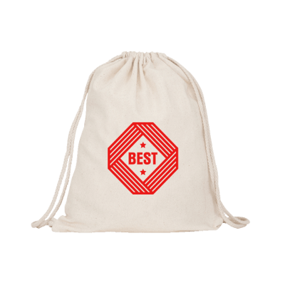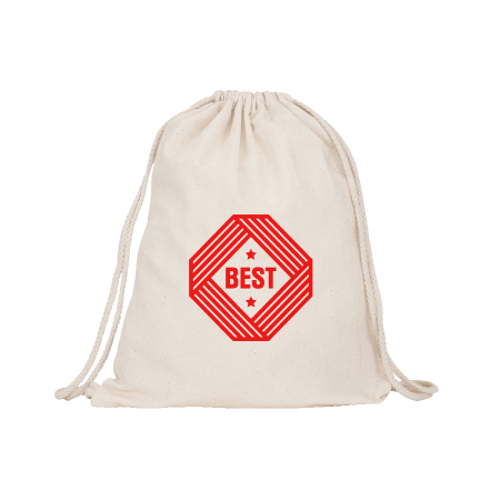 Katoenen rugzak ecru 350 x 495 cm, met koord 50 x 550 mm, 100% katoen, 140 gr/m2.