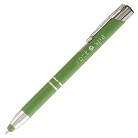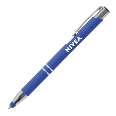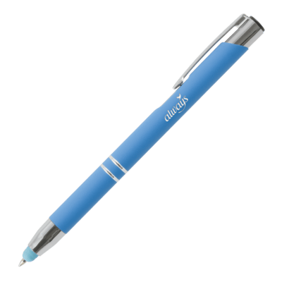 OBI TOUCH balpen soft met lasergravering - prachtige stylus balpen, uitstekende prijs-kwaliteitsverhouding, voor smartphones en tablets, in 7 levendige kleuren: donkerblauw, lichtblauw, roze, rood, oranje, geel en lichtgroen, blauwschrijvend.