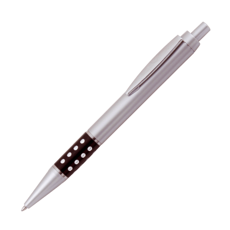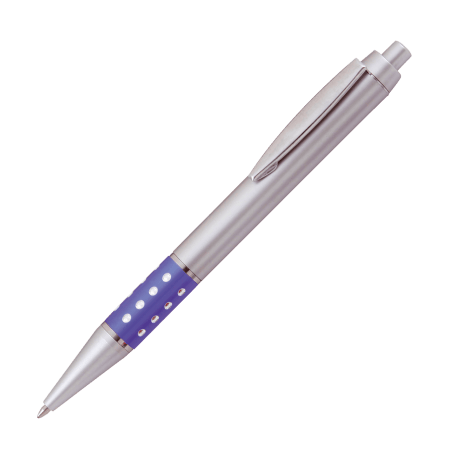 ARRAN kunststof balpen Peekay, met metalen clip en opvallend gekleurde gripzone met grijze gaten en een blauwschrijvende kunststof langschrijfvulling.
