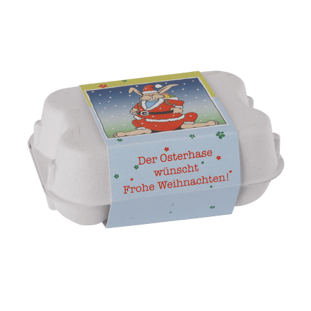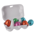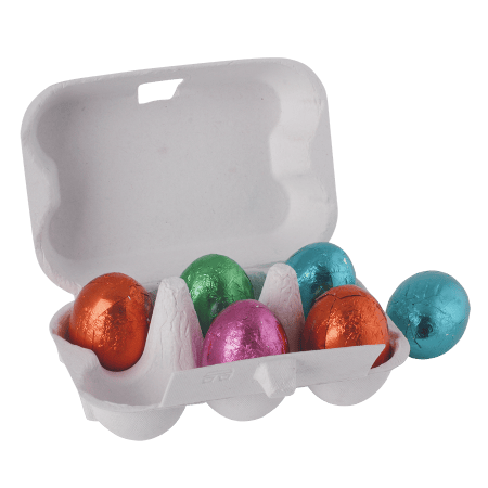 Eierdoosje 9,5 x 7 x 4 cm., gevuld met 6 paaseitjes. Ideaal als paasgeschenk.