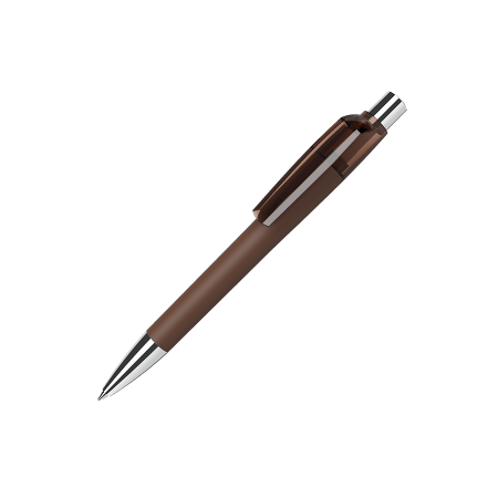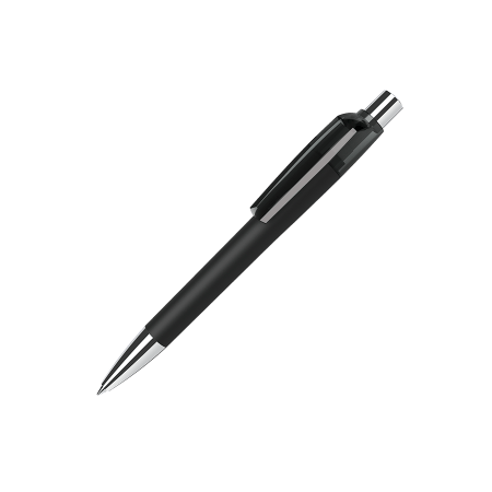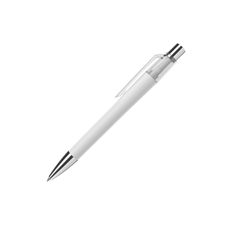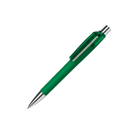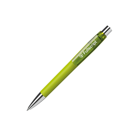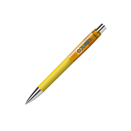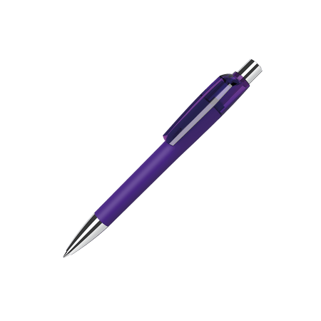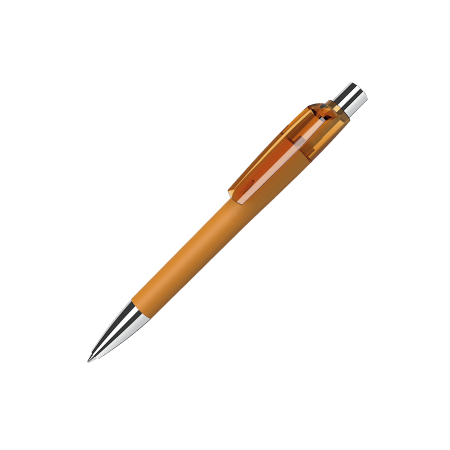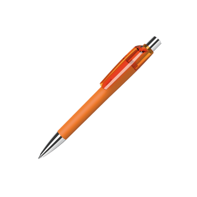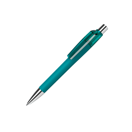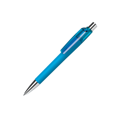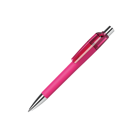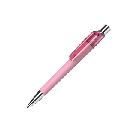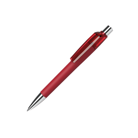 Maxema balpen MOOD MD1 GOM 30 M1 met gekleurde houder voorzien van rubber coating, glanzende gekleurde transparante clip, verchroomd metalen puntstuk en drukker. Voorzien van Parker vulling met blauwe Dokumental inkt voor tot 4.000 meter schrijfplezier. Houders en clips leverbaar in maar liefst 18 kleuren die per onderdeel vanaf 2.000 onderling te combineren zijn