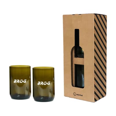 Set Rebottled® design drinkglazen gemaakt van geupcyclede wijnflessen. Unieke glazen waarin je direct de oorspronkelijke wijnfles herkent. De glazen liggen lekker in de hand en hebben een gladde afwerking. Van hoge kwaliteit en geschikt voor water, frisdrank of cocktails. Dutch Design. Made in Holland. Inhoud ca. 330 ml per glas. De glazen worden per set geleverd in een originele geschenkverpakking van gerecycled, FSC-gecertificeerd karton. Bedrukking alleen mogelijk in de kleur zwart of wit. Rebottled® is een merk dat lege wijnflessen upcycled tot duurzame design items (100% circulair). Een bewuste keuze voor een schoner milieu.