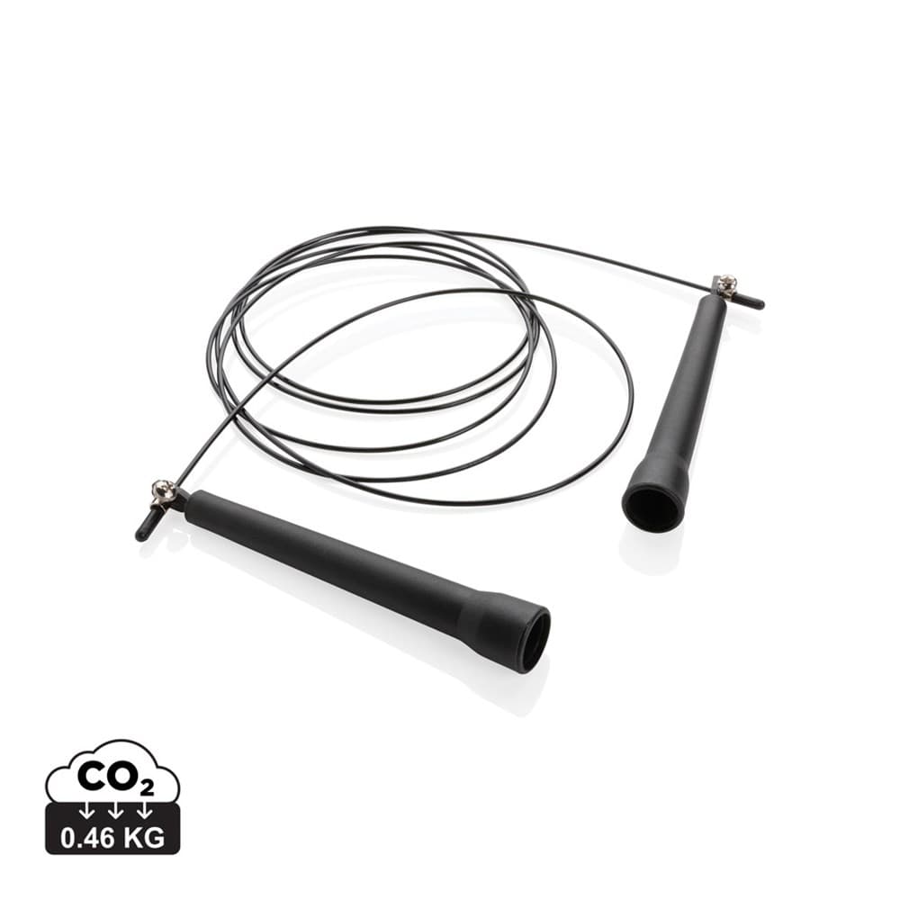 Dit verstelbare springtouw is perfect om cardiotraining met hoge intensiteit in elke training te integreren.Verhoogt de hartslag, verbrandt calorieën en verbetert de coördinatie. De lengte kan eenvoudig worden aangepast voor verschillende gebruikers. Gemaakt van super lichtgewicht kunststof (PP) voor optimale snelheid en comfortabele handvatten. Het springtouw wordt geleverd in een zwart etui om het gemakkelijk mee te nemen.