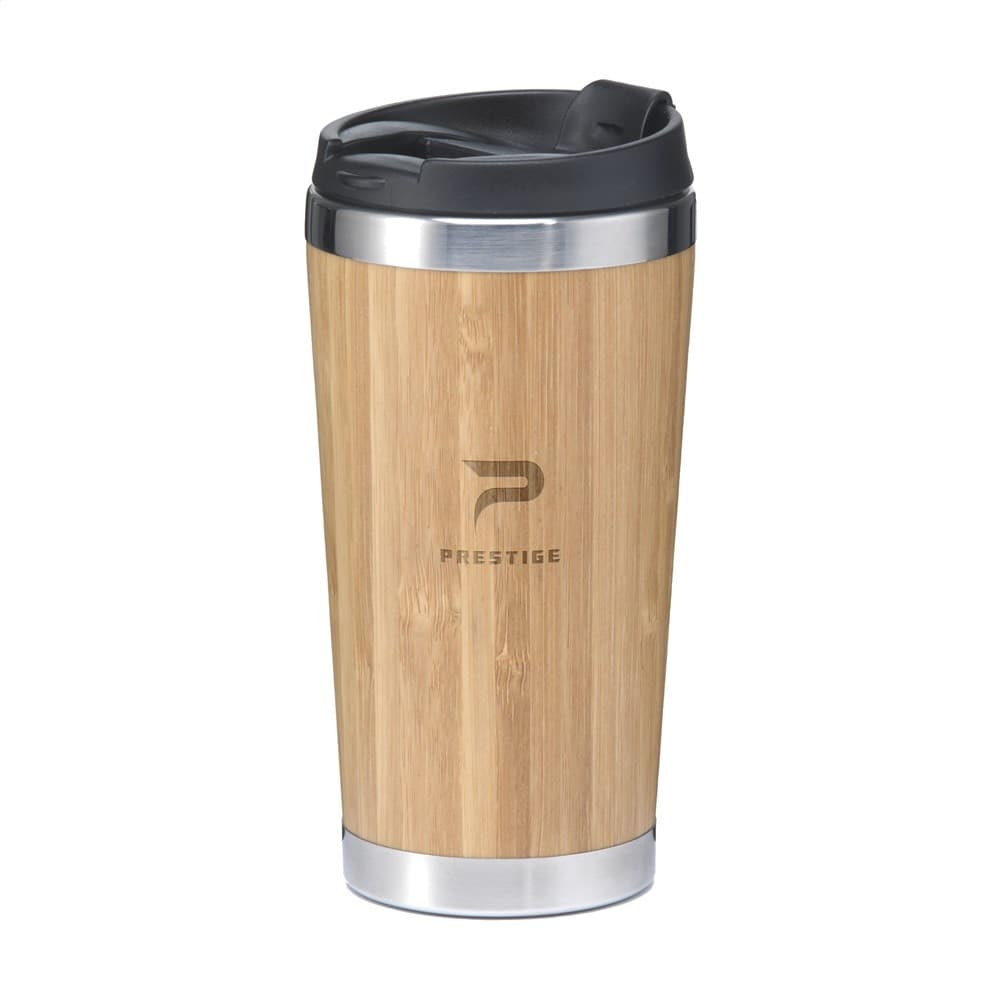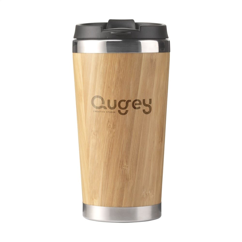 Dubbelwandige, lekvrije, thermosbeker met RVS binnenzijde en bamboe afwerking aan de buitenzijde. Met schroefdeksel, klikopening en slipvaste onderzijde. Inhoud 450 ml. Per stuk in doos. Perfect voor thermosbekers bedrukken.