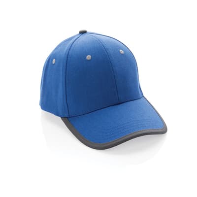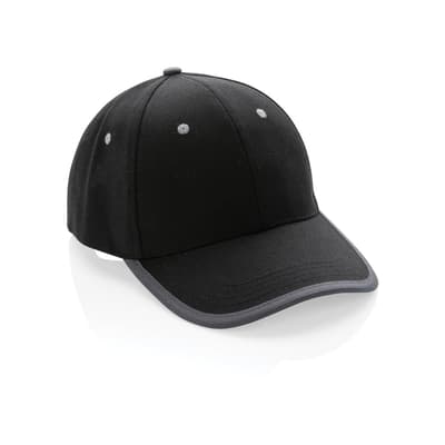 Baseballcap van 100% katoen met reflecterende biezen, voorgevormde klep en klittenbandsluiting.