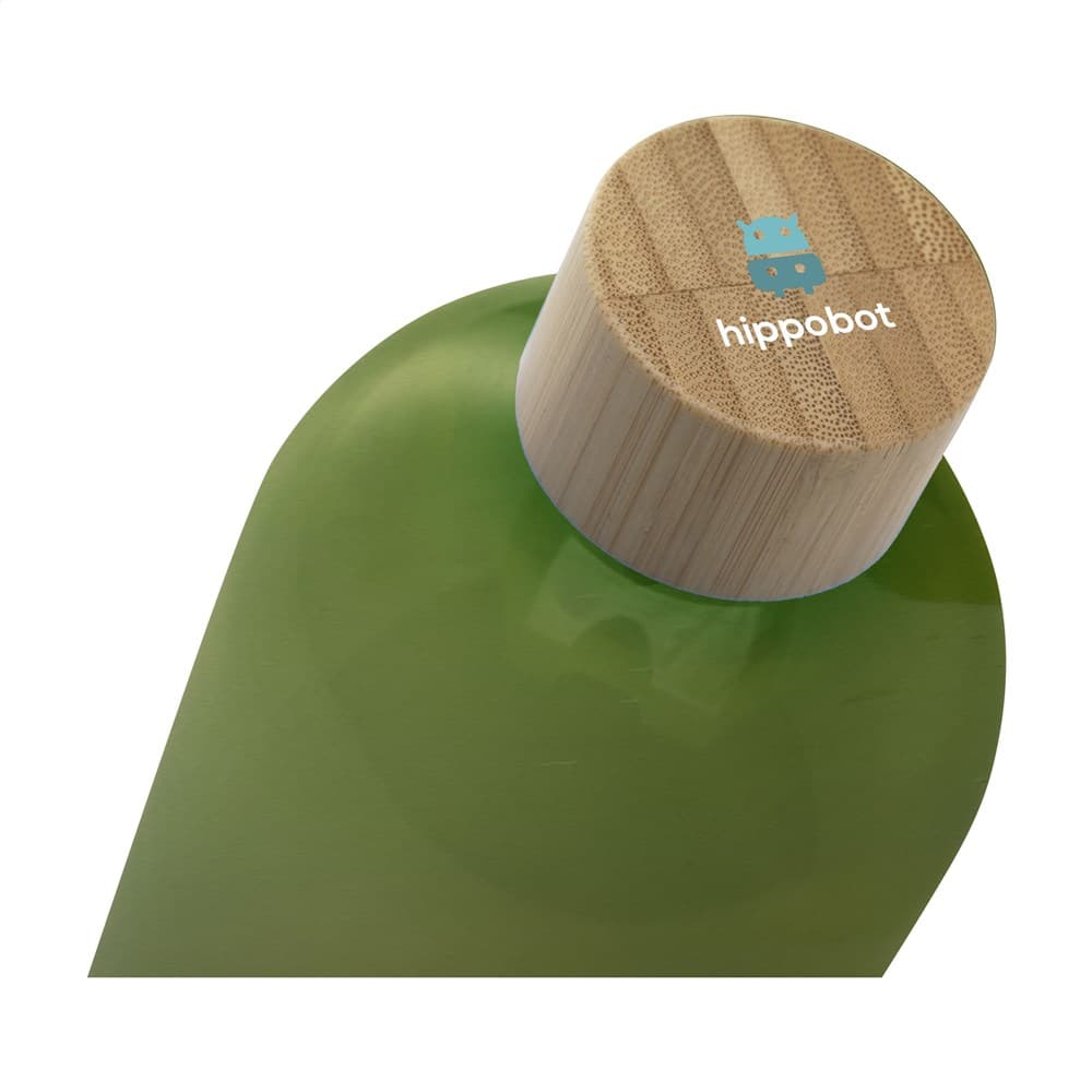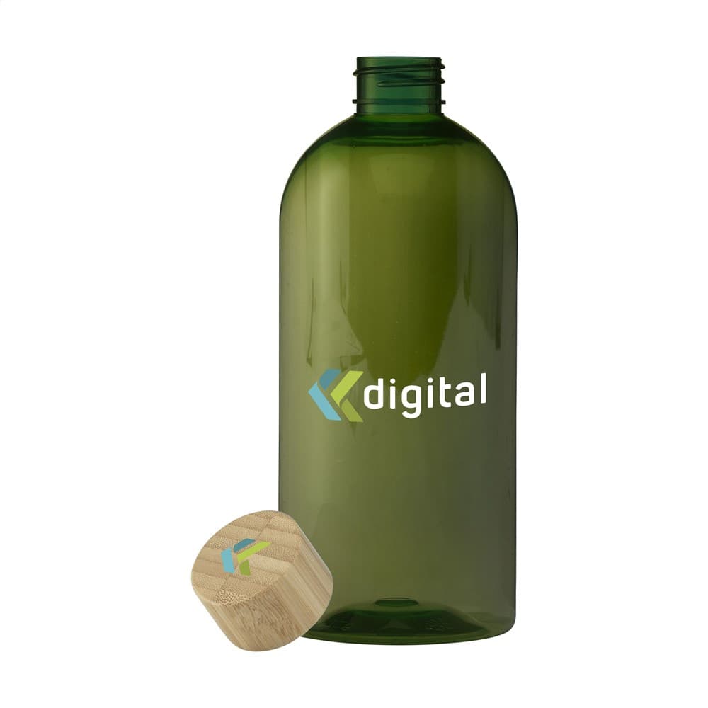 WoW! Deze drinkfles is gemaakt van 100% RPET. Met bamboe schroefdop. Lekvrij en BPA-vrij. Inhoud 500 ml. Kiezen voor RPET betekent een besparing van 75% fossiele energie bij de productie en nog eens 5% bij de verbranding. Kunststof, dus ook polyester, wordt gemaakt van aardolie. Producten van RPET zorgen voor 70% lagere CO2 uitstoot. Gerecycled polyester gebruikt 90% minder drinkwater dan polyester en gerecyclede flessen komen niet in de oceaan. Recycling levert mondiaal veel banen op. RPET is van dezelfde hoge kwaliteit die je gewend bent. Optioneel: Per stuk in kraft doos en/of met kraft tag.