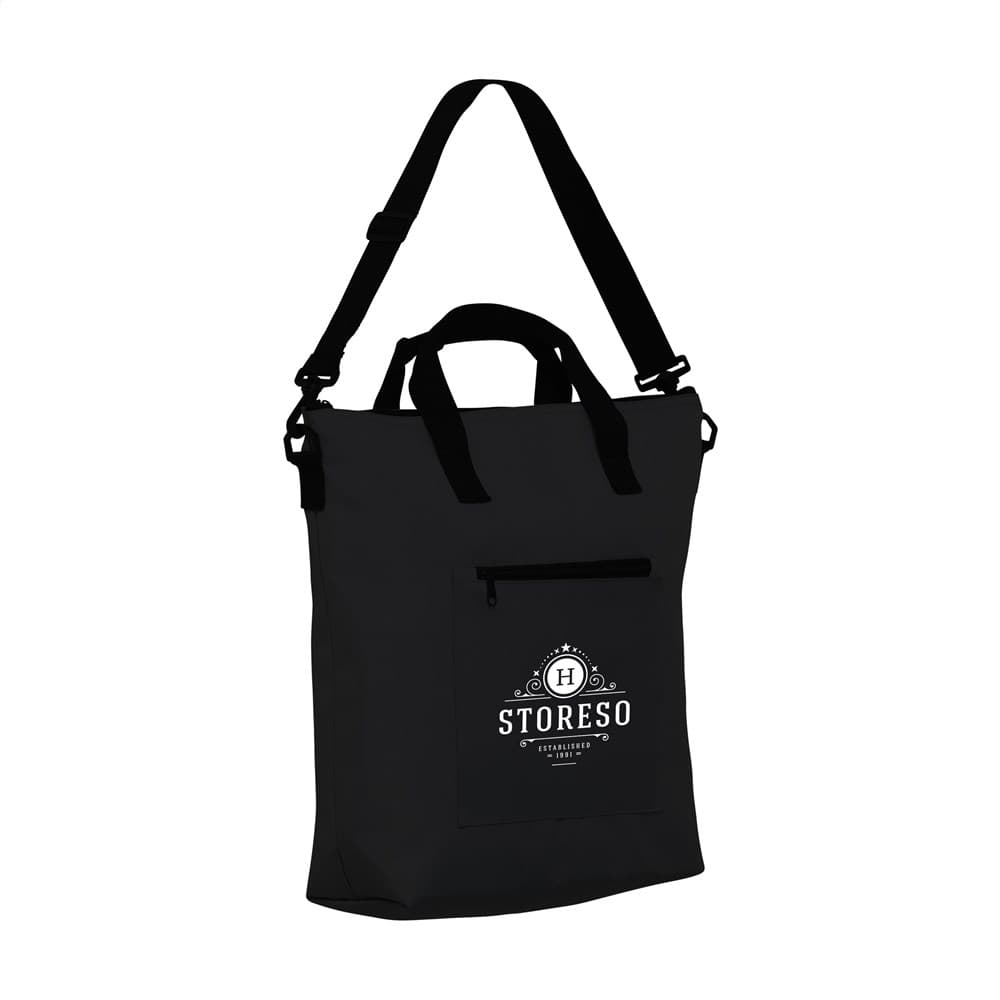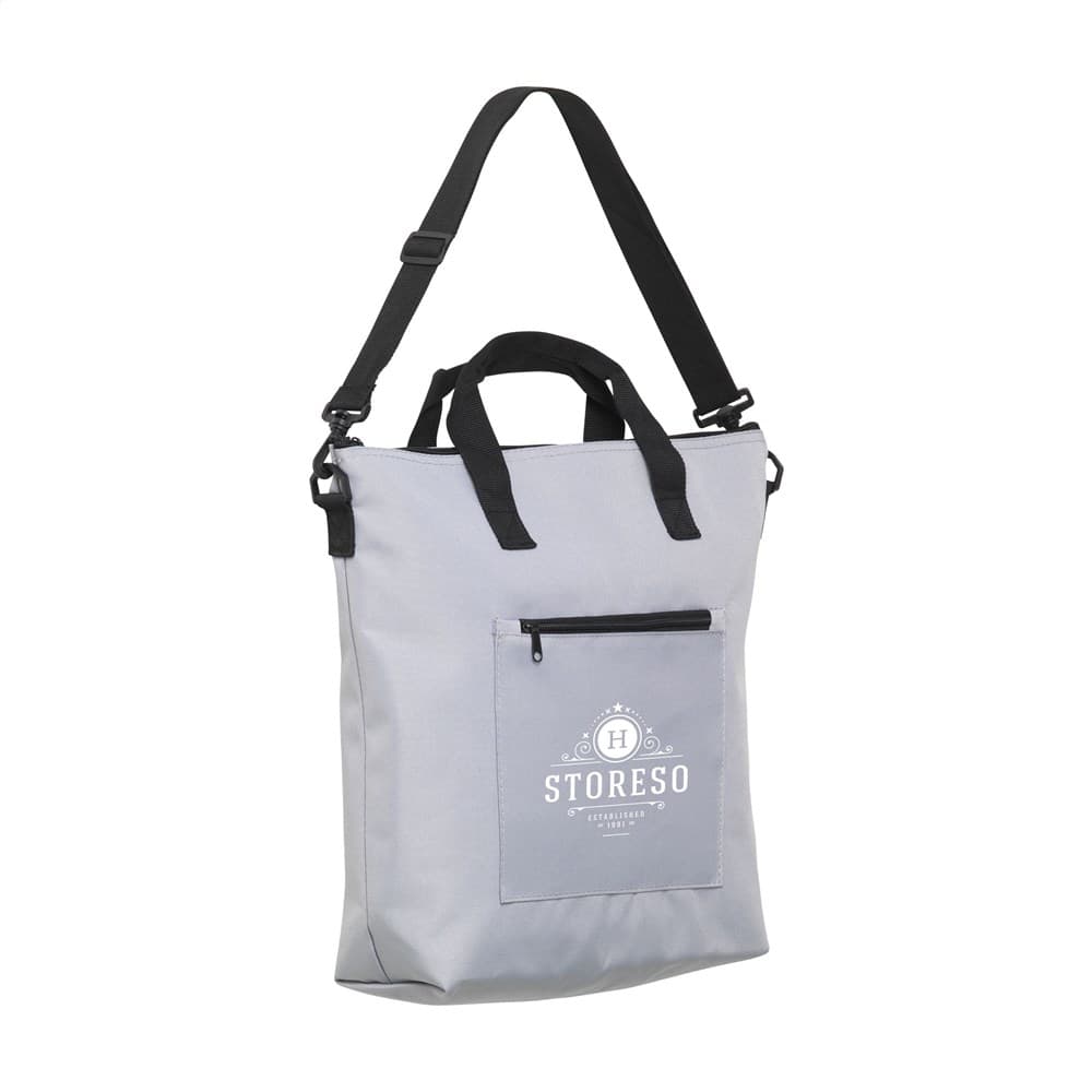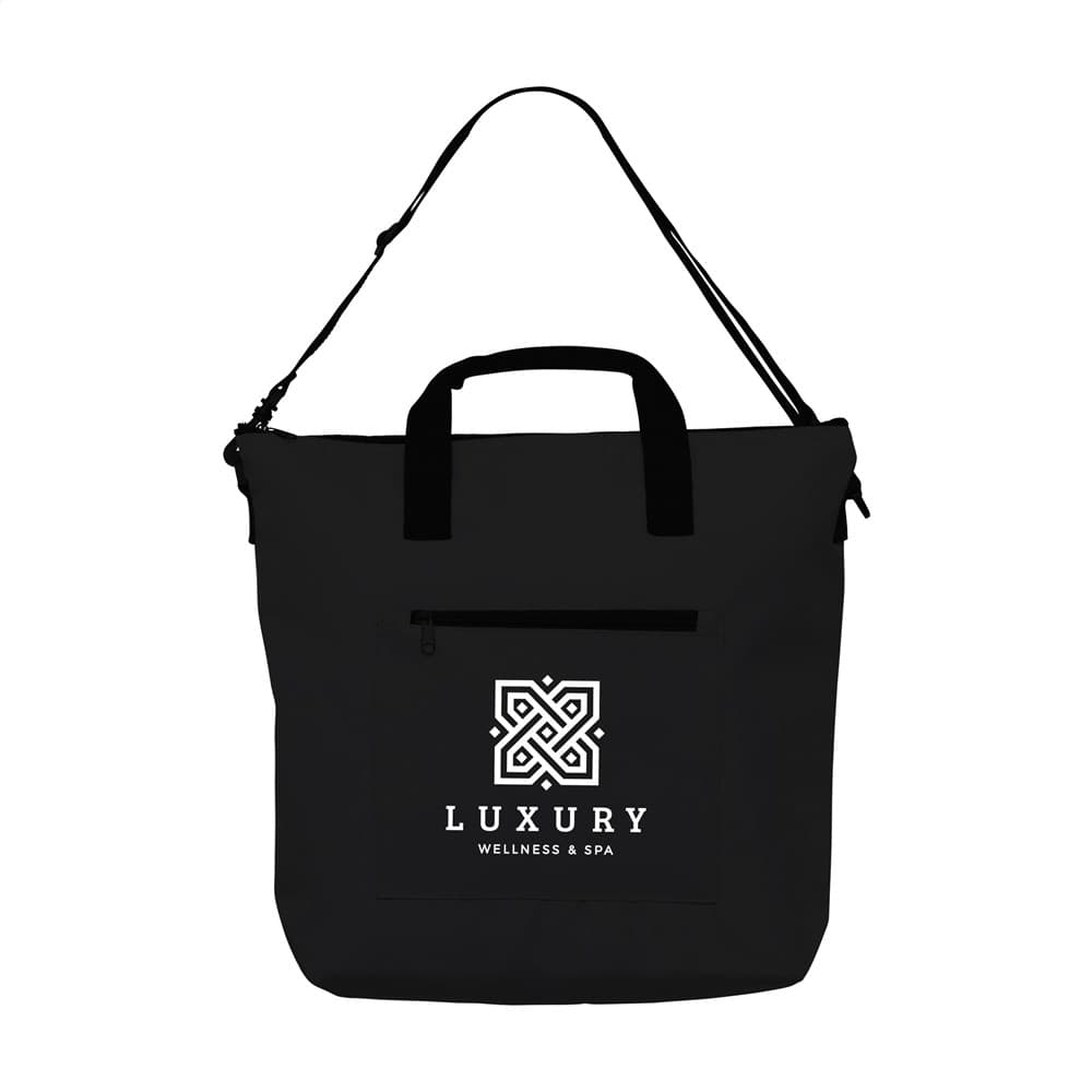 WoW! Een mooi vormgegeven koeltas, gemaakt van 100% gerecycled PET. De binnenkant van de tas is bekleed met aluminiumfolie. Deze isolerende combinatie van lucht en aluminium houdt de inhoud van de tas maar liefst 10 uur koel met behulp van een koelelement. De koeltas heeft een handige ritssluiting, twee stevige handgrepen en een verstelbare schouderband. Aan de buitenkant van de koeltas zit een extra ritsvak - handig voor je telefoon, portemonnee of iets anders dat niet koel bewaard hoeft te worden. Inhoud ca. 15 liter.