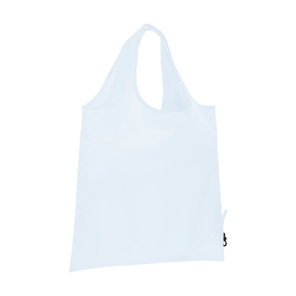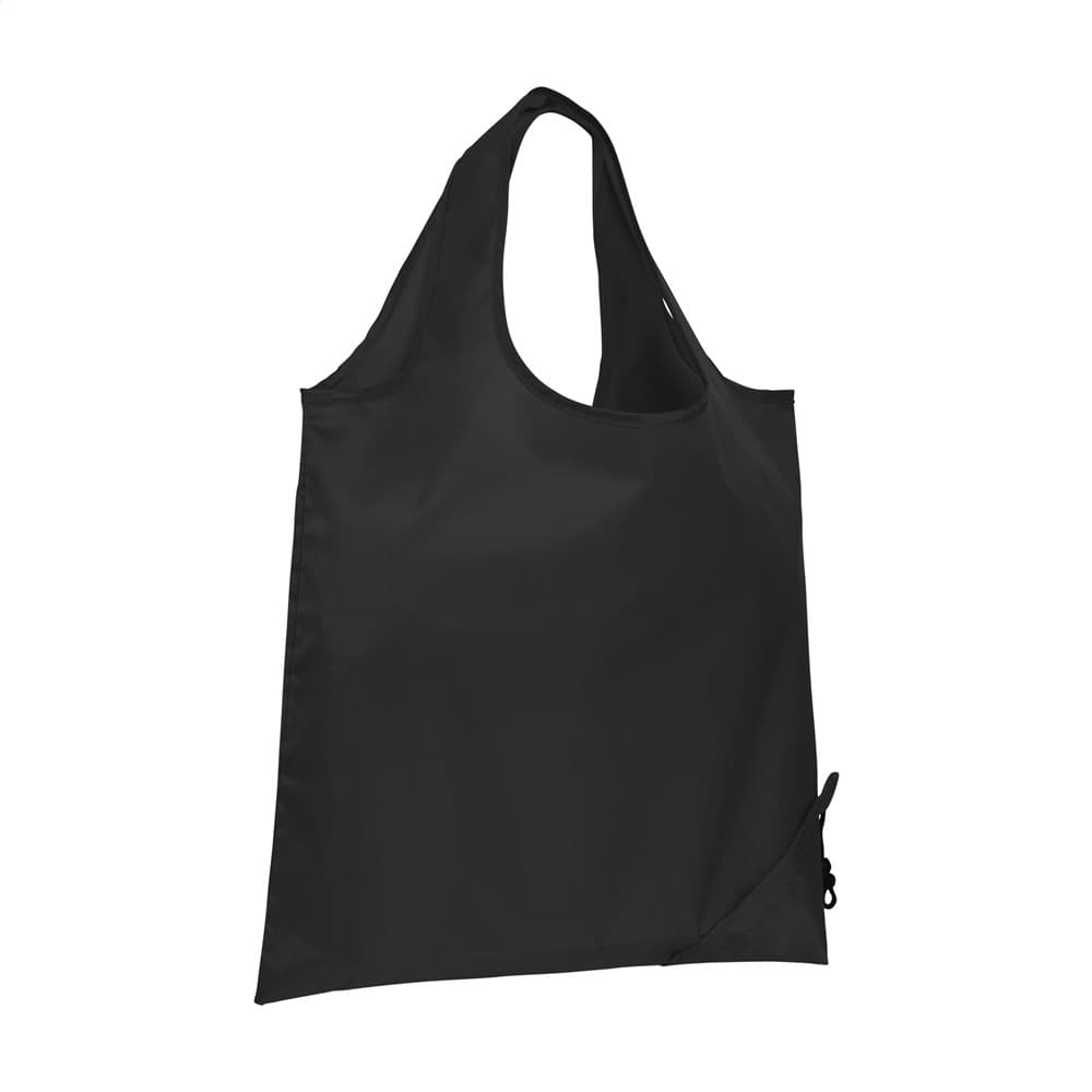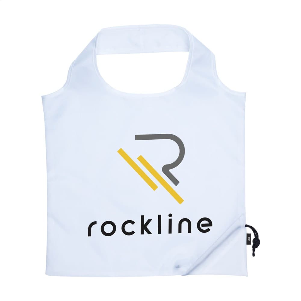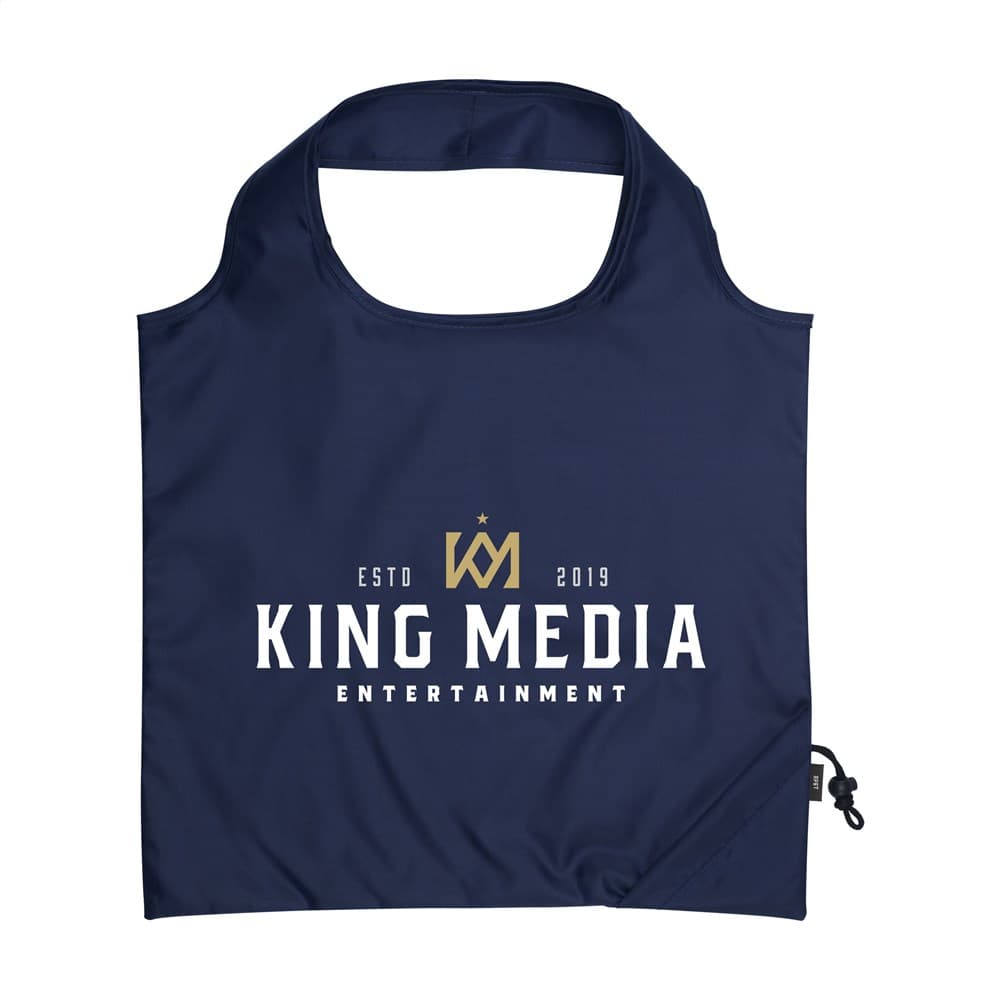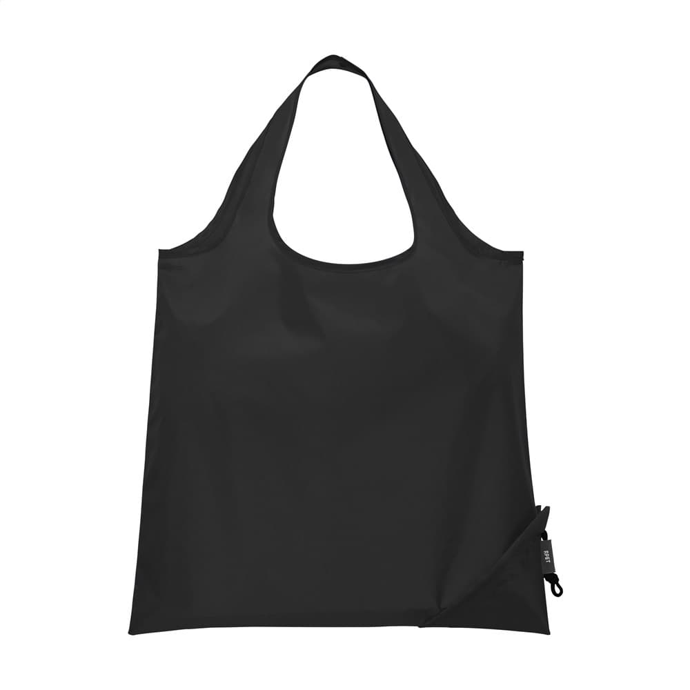 WoW! Opvouwbare, royale winkeltas van RPET polyester, gemaakt van gerecyclede PET-flessen. Met dubbele draaglus. In een handomdraai van pouch naar tas en andersom. Afm. uitgevouwen 42 x 38 cm.