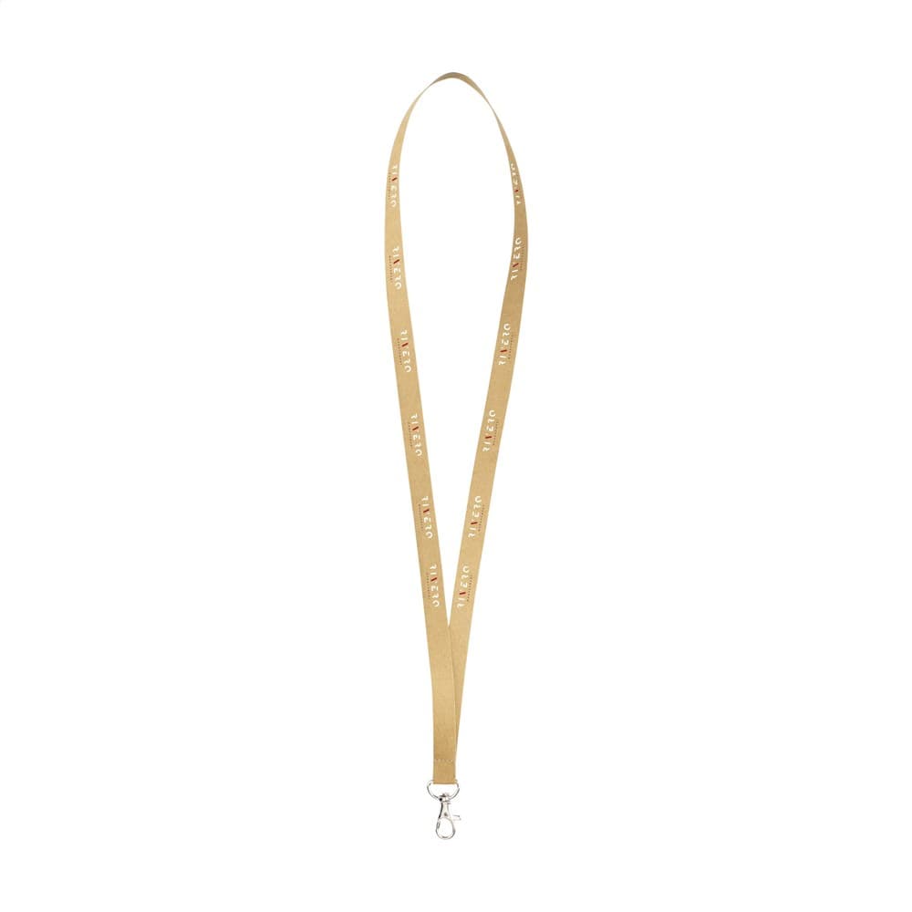 Lanyard gemaakt van geïmpregneerd, waterafstotend papier. Met metalen karabijhaak. Duurzaam en ecologisch verantwoord. Made in Europe.