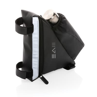 Deze PU high visibility fietstas met fleshouder is de ideale accessoire om mee te nemen op een ontspannen fietstocht. U hoeft geen tas mee te nemen, stop gewoon uw benodigdheden in de fietstas aan frmae, uw fles water en klaar bent u! Makkelijk te bevestigen dankzij de klittenbandstrips. Waterafstotend. Het reflectievermogen is getest in overeenstemming met EN 13356: 2001.