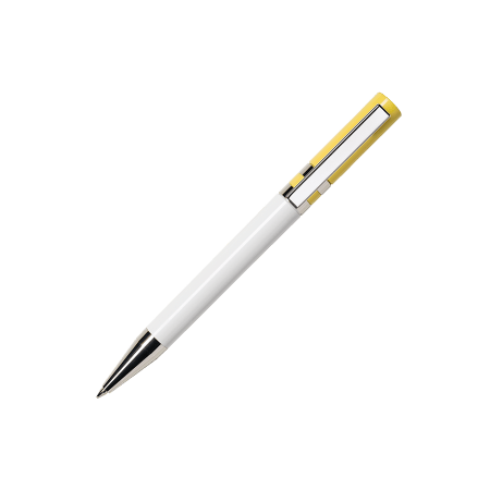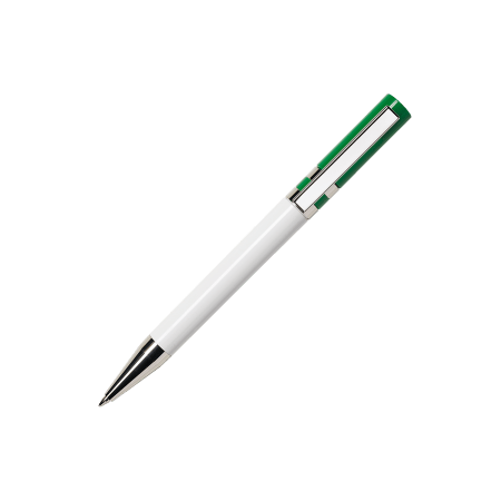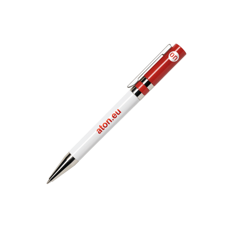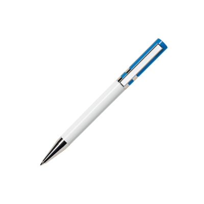 Maxema balpen ETHIC ET900 BC, draaibalpen met glanzend witte houder, glanzende gekleurd bovenstuk en middelste ring, glanzend wit element in de top van het bovenstuk, verchroomde clip, puntstuk en 2 ringen. Voorzien van Jumbo vulling met blauwe Dokumental inkt voor tot 2.500 meter schrijfplezier. De onderdelen van de pen zijn leverbaar in maar liefst 10 kleuren en zijn vanaf 2.000 stuks onderling qua kleur te combineren.