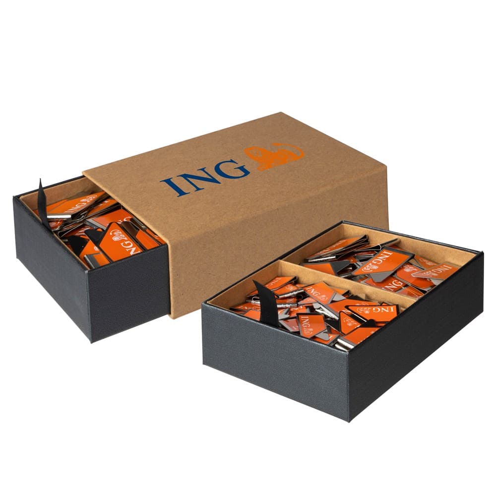 De luxury box voor gebruik op het bureau, biedt ruimte aan twee kartonnen doosjes