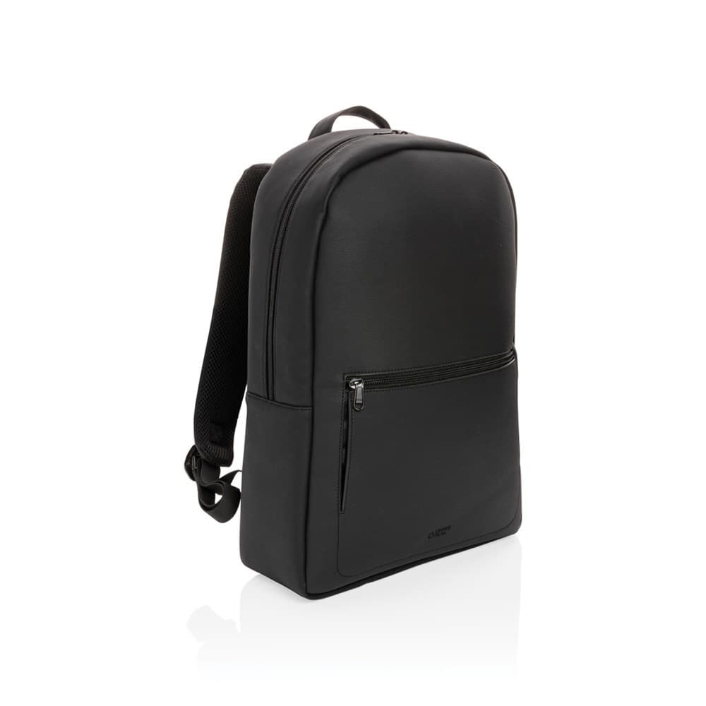 Geef je werkstijl een boost met deze gestructureerde rugzak gemaakt van zacht vegan leer in een strakke en gestroomlijnde stijl met ton-sur-ton ritsen. De rugzak heeft een ritssluiting aan de bovenkant, een handvat aan de bovenkant, verstelbare schouderbanden, een extern vak met ritssluiting, een binnenvak met ritssluiting, een bagageriem en een 15,6 inch laptopvak. Buitenkant 100% PU, binnenkant 100% 210D polyester. PVC-vrij.