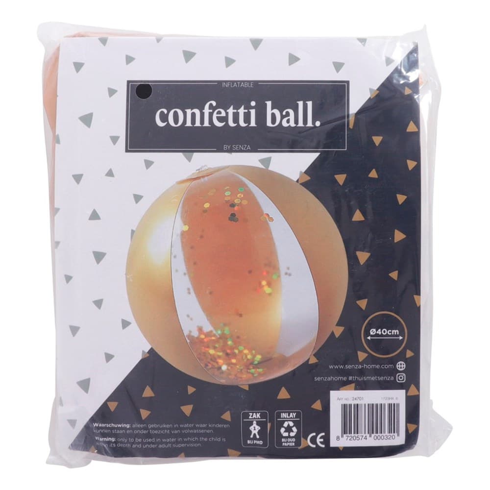 Urenlang speelplezier met deze leuke strandbal! Deze strandbal met gouden confetti is geschikt voor jong en oud. Neem de bal mee naar het zwembad of het strand, waar hij schittert in de zomerzon. De strandbal is gemakkelijk en snel op te blazen middels het blaasventieltje.