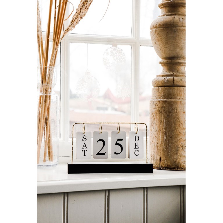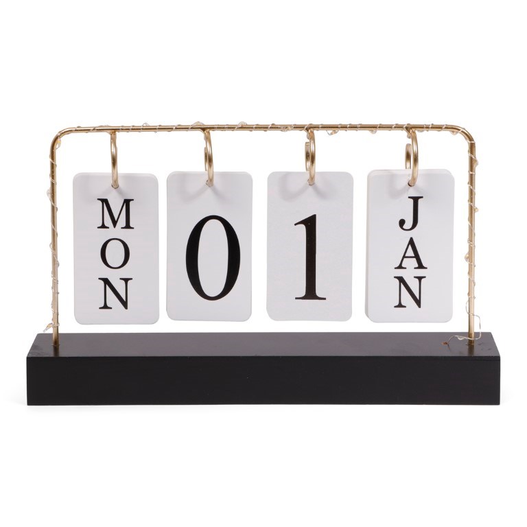 Met deze vrolijke kalender weet je precies welke dag het is. Je kunt eenvoudig de kaartjes met dagen en maanden verwisselen. Daarnaast is het artikel voorzien van een LED string zodat het ook nog eens extra sfeervol kan worden neergezet. Aan de onderkant kun je de LED string makkelijk aan/uit zetten.