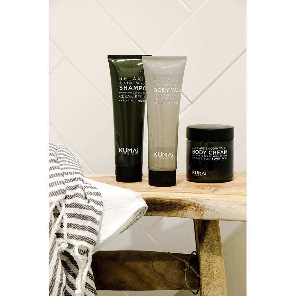 Deze luxe vegan body crème beschermd en verzorgt de huid. De crème is verrijkt met Fair Trade shea butter wat helpt de huid te herstellen en diep te voeden. De crème heeft een verfrissende geur van muskus, hout en citrus en is door de milde ingrediënten geschikt voor alle huidtypes. Onmisbaar in iedere badkamer!