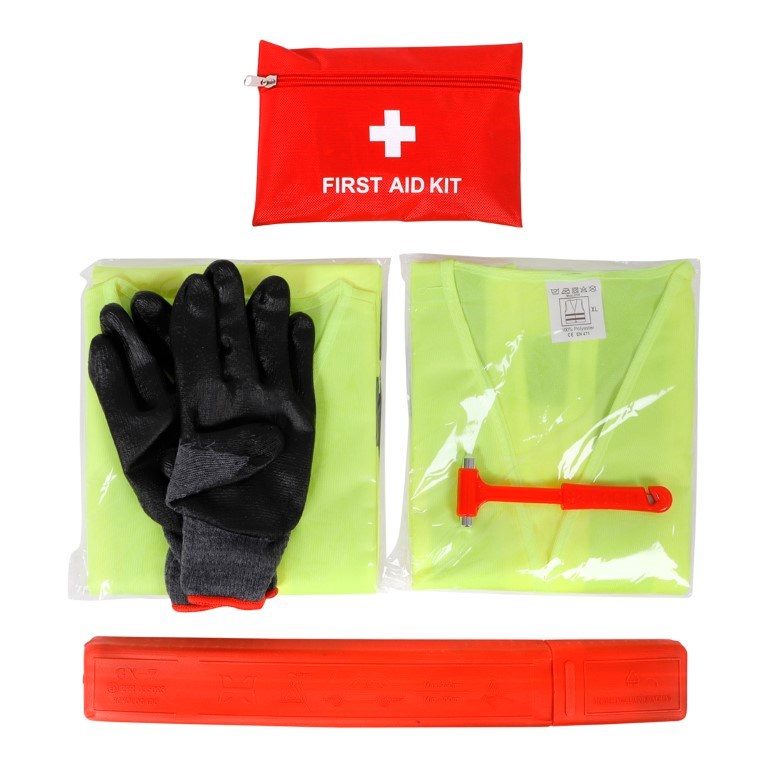 Een tas ontwikkeld om met een veilig gevoel de weg op te gaan! Deze tas bevat onder andere twee reflecterende veiligheidshesjes, een veiligheidshamer, EHBO doos, één paar handschoenen en in het onderste compartiment een reflecterende gevarendriehoek. De compartimenten zijn te sluiten middels een ritssluiting. Aan de onder- en achterzijde van de tas zitten klittenbandstrips waardoor het eenvoudig aan de bekleding van het interieur bevestigd kan worden.