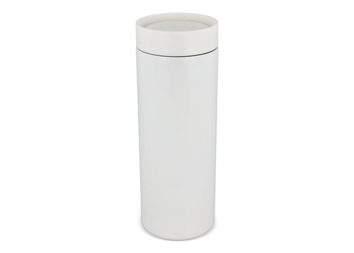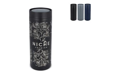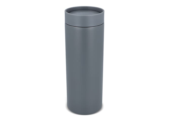 Modern ontworpen thermobeker van gerecycled roestvrij staal (400 ml). Met een lekvrije 360-graden drinkdop. Lasergegraveerde logo's hebben een chroomeffect, maar ook een digital high gloss bedrukking zorgt voor een subtiel effect. Per stuk verpakt in een geschenkdoos.