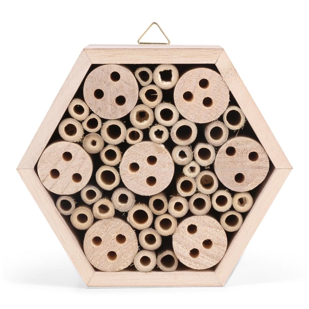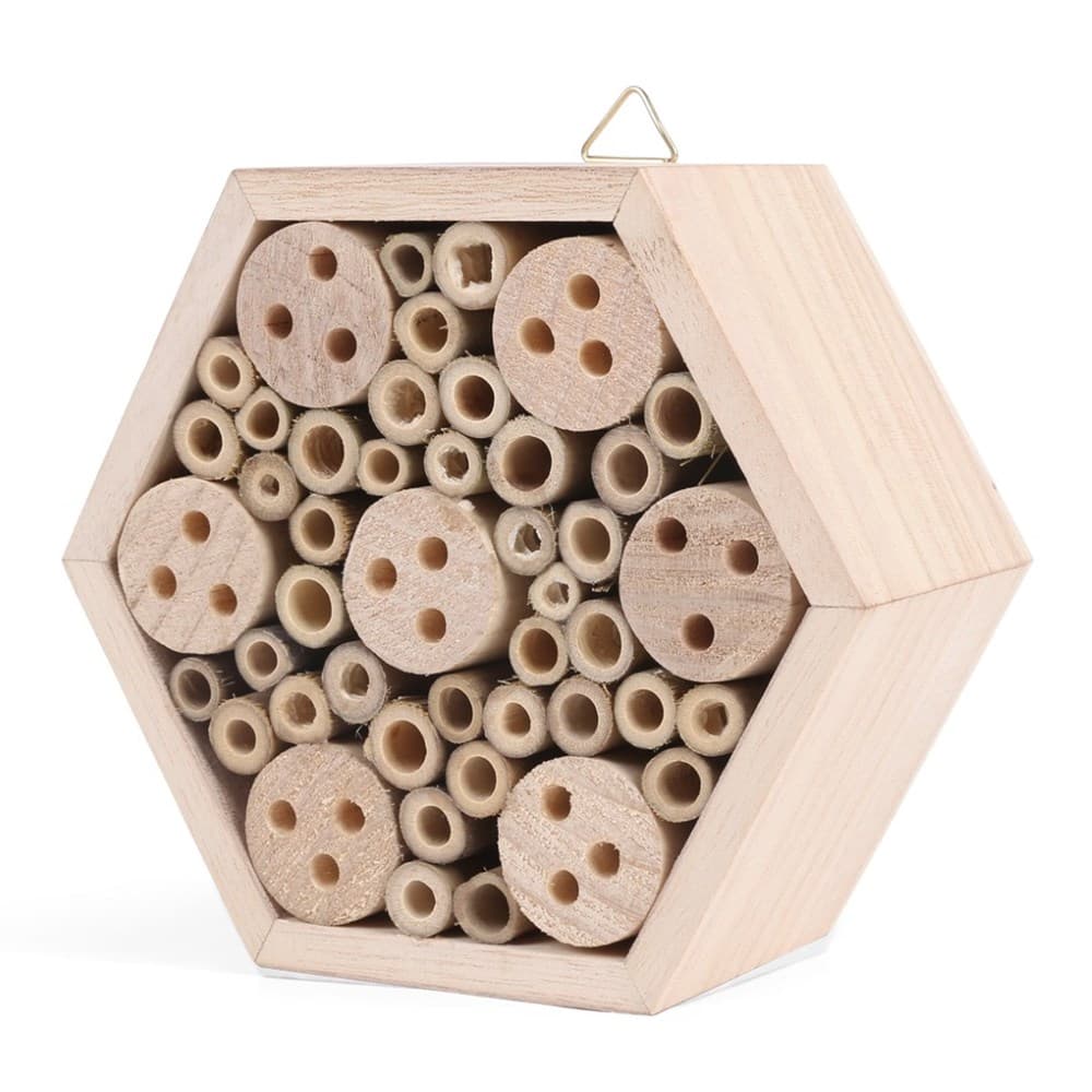 Help de natuur een handje in je eigen tuin! Bijen zoeken in de herfst en winter een droog en veilig onderkomen. Door dit bijenhotel in de tuin op te hangen geef je bijen een fijn plekje om de koude maanden door te komen. Wist je dat bijen erg nuttige insecten zijn? Bijen zijn bestuivers van bloemen en fruit.