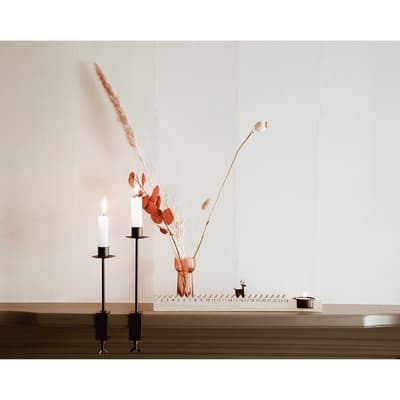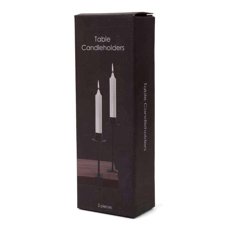 Een elegante set van twee kandelaren. De kaarsenhouders zijn gemaakt van zwart metaal en verschillen ieder in hoogte. Je kunt deze eenvoudig aan de rand van de tafel klemmen en vast draaien.