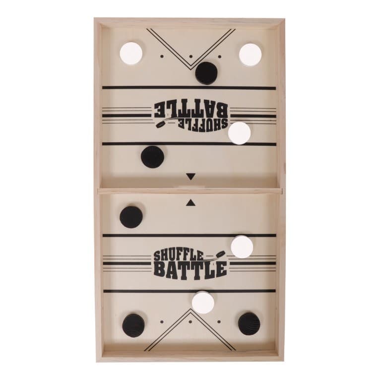 Bij dit spel gaat het er om dat jouw gekleurde schijfjes zo snel mogelijk op het veld van de tegenstander geschoten worden. Door middel van de elastieken band schiet je de schijfjes door de smalle opening naar de andere kant. De eerste speler die geen schijven meer heeft, wint het spel!