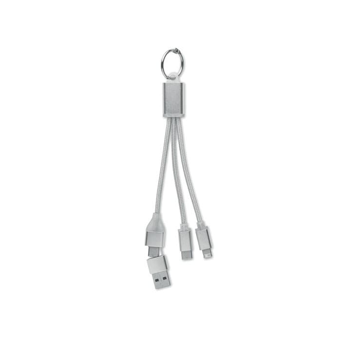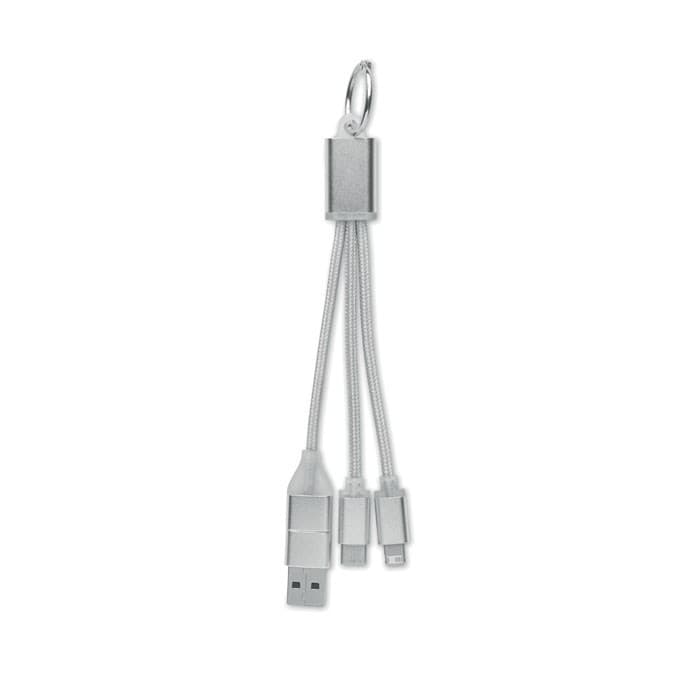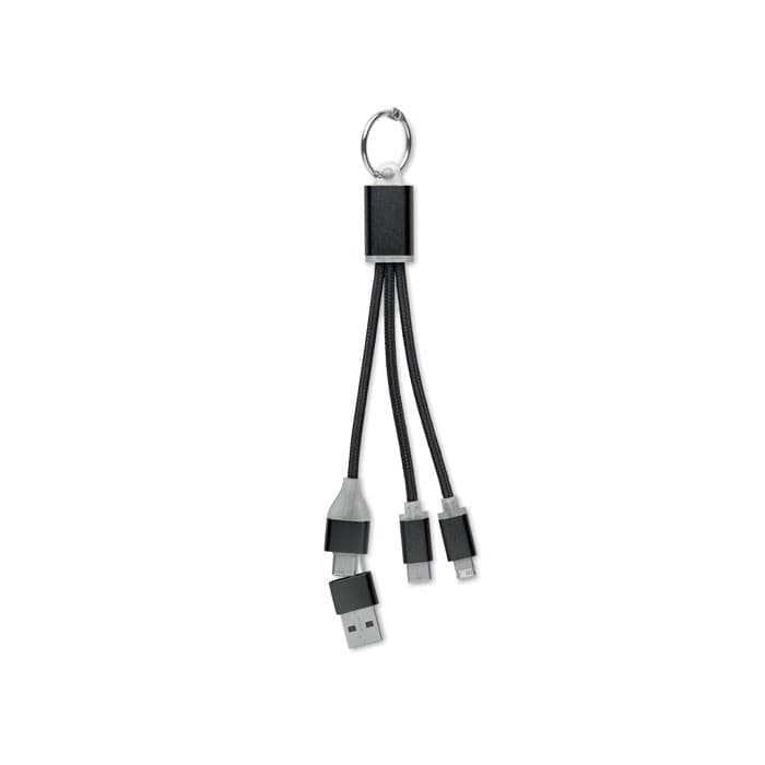 Sleutelhanger met oplaadkabel, voorzien van 2-in-1 type-C & type-A / micro-B ingang en type-C uitgang. Geschikt voor bedrukking binnen computer- en telefonieaccessoires.