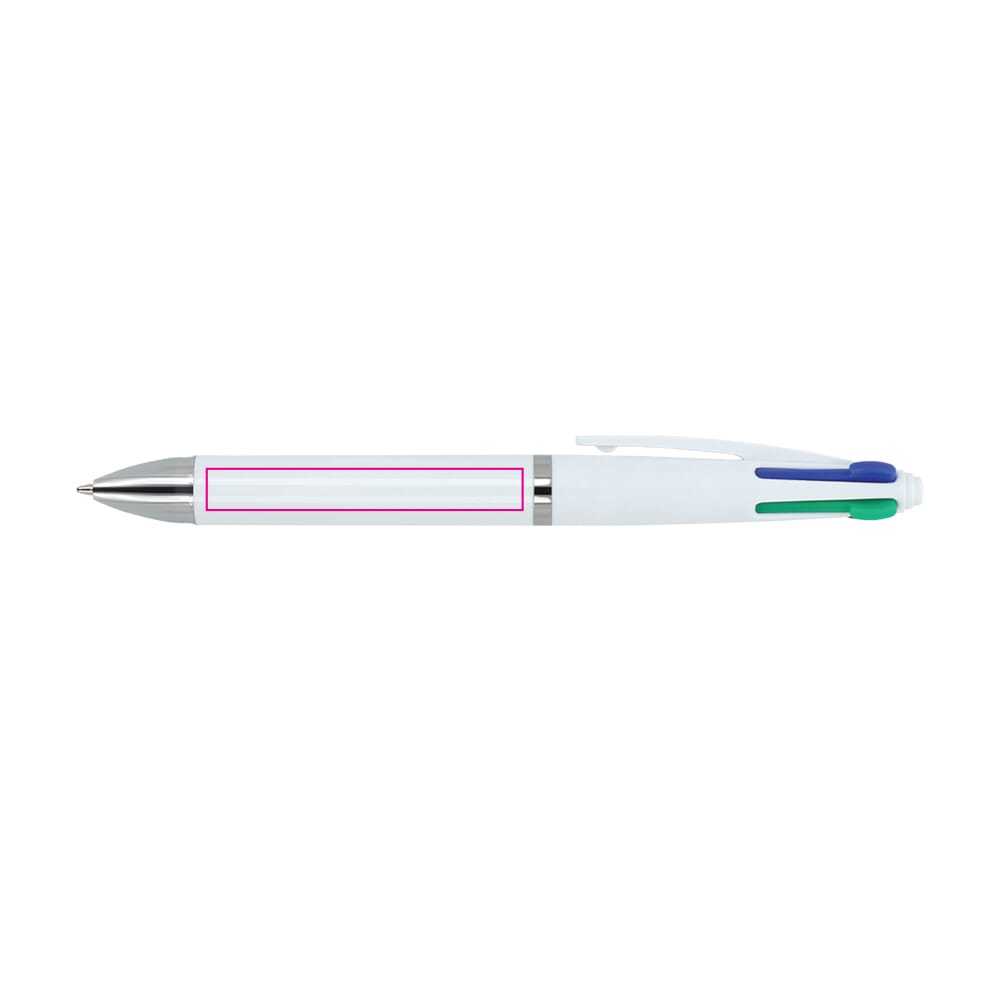 Klassieke 4-kleurenpen met de schrijfkleuren zwart, blauw, rood en groen.