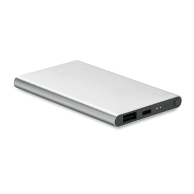 Powerbank 4000 mAh capaciteit in aluminium. Output DC5V/2A. Inclusief indicatielampje en USB-kabel met Type C.