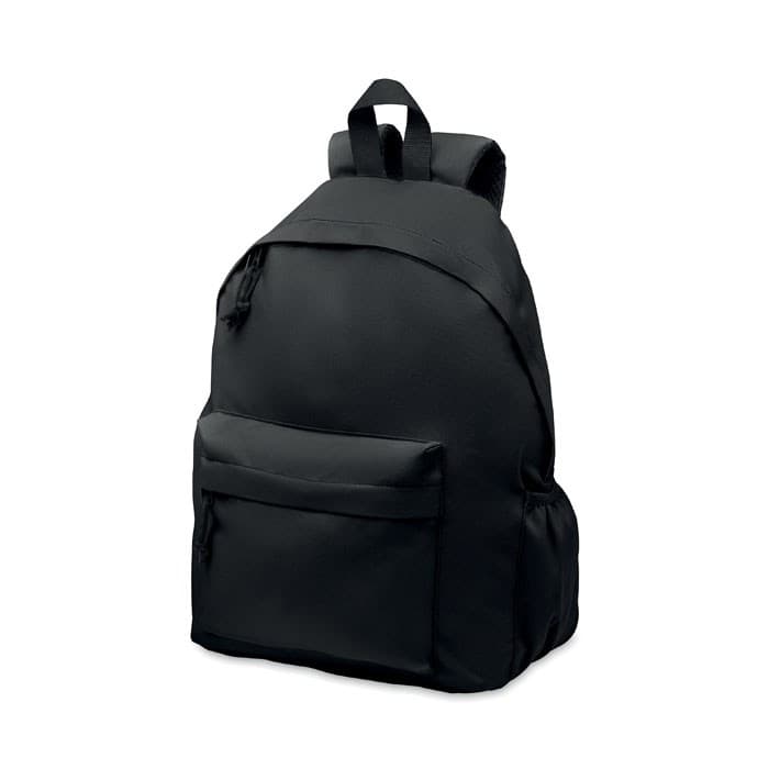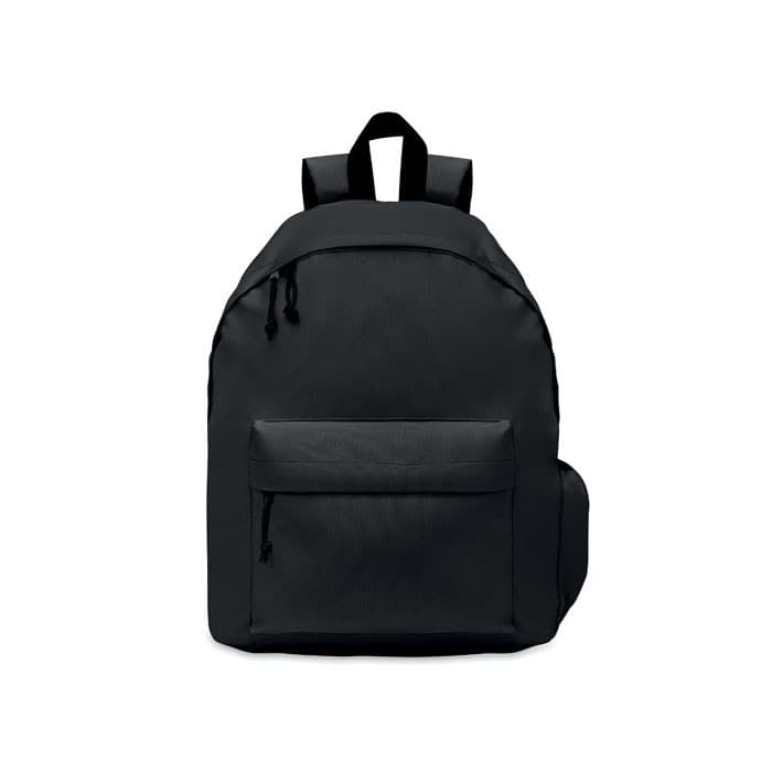 Rugzak in 600D RPET polyester met buitenvak met rits. Gewatteerde rug en een flessencompartiment aan de zijkant.