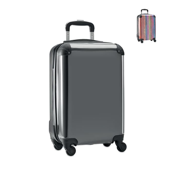 Trolley van PC en ABS met compartiment voor foto. Het heeft een bovenvak met rits en een ondervak met linten. Inclusief cijferslot en dubbel buizenframe.